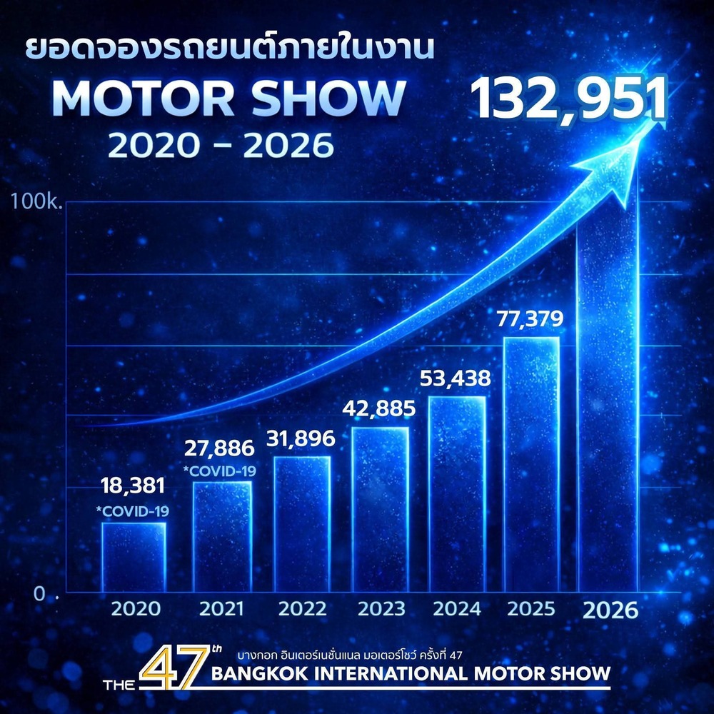 The 47th Bangkok International Motor Show, organized by Grand Prix International Public Company Limited, concluded successfully under the theme “The ICONIC SYNCHRONICITY,” reflecting seamless mobility and innovation. Held amid ongoing global energy volatility driven by unrest in the Middle East, the event nonetheless attracted strong interest from both consumers and automotive industry stakeholders. Throughout the exhibition period, the show generated a total of 132,951 vehicle bookings and 2,056 motorcycle bookings, while welcoming 1,798,312 visitors.These figures reflect a steady recovery in purchasing power and growing market confidence, underscoring the resilience and continued momentum of Thailand’s automotive industry.
